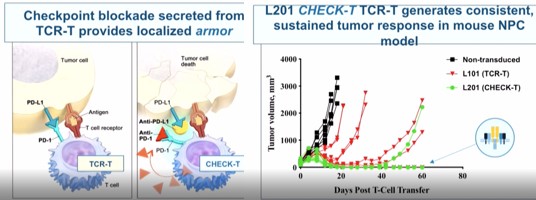 在對比該策略與CAR-T細胞聯用PD-1抑制劑這一方法的優勢時,雷博士表示,后者為兩款藥物的聯用而TC-E202則可以憑借自身就帶來兩種成效,這在成本上就做到很大程度的節約。在另一方面,T細胞回輸病患體內后也會有更低的細胞毒性。